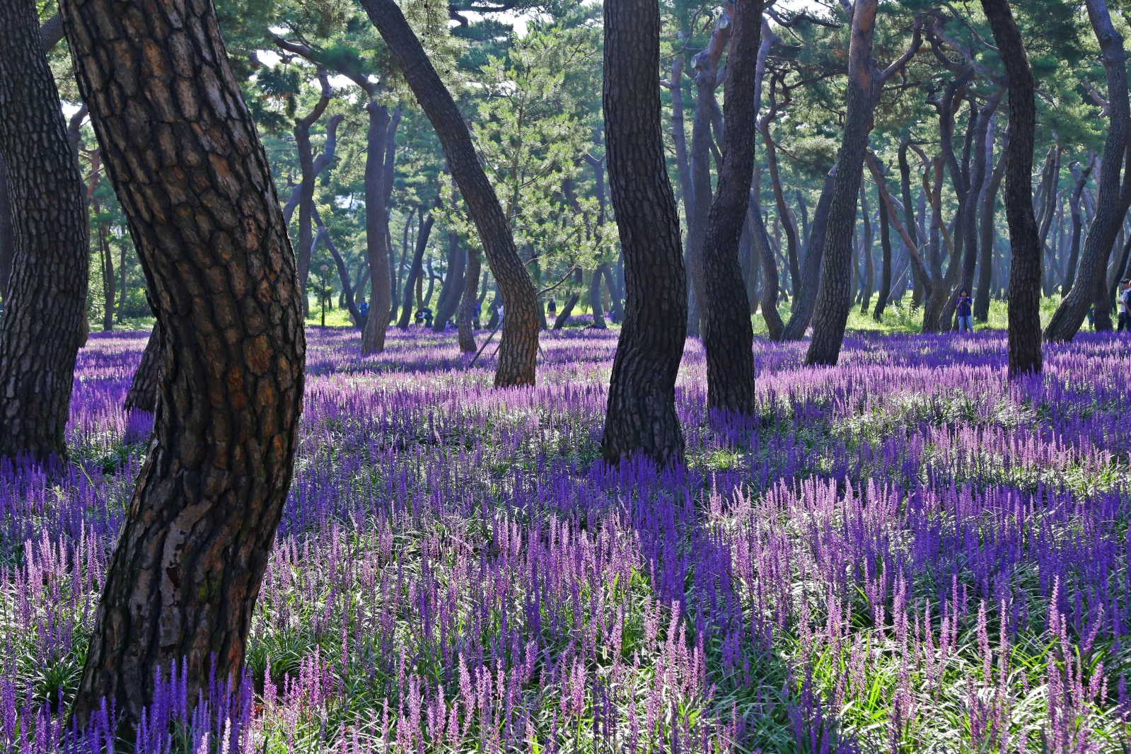 여름이면 솔숲 산책로에 맥문동 군락이 조성되어 수려한 풍광을 더해주고,