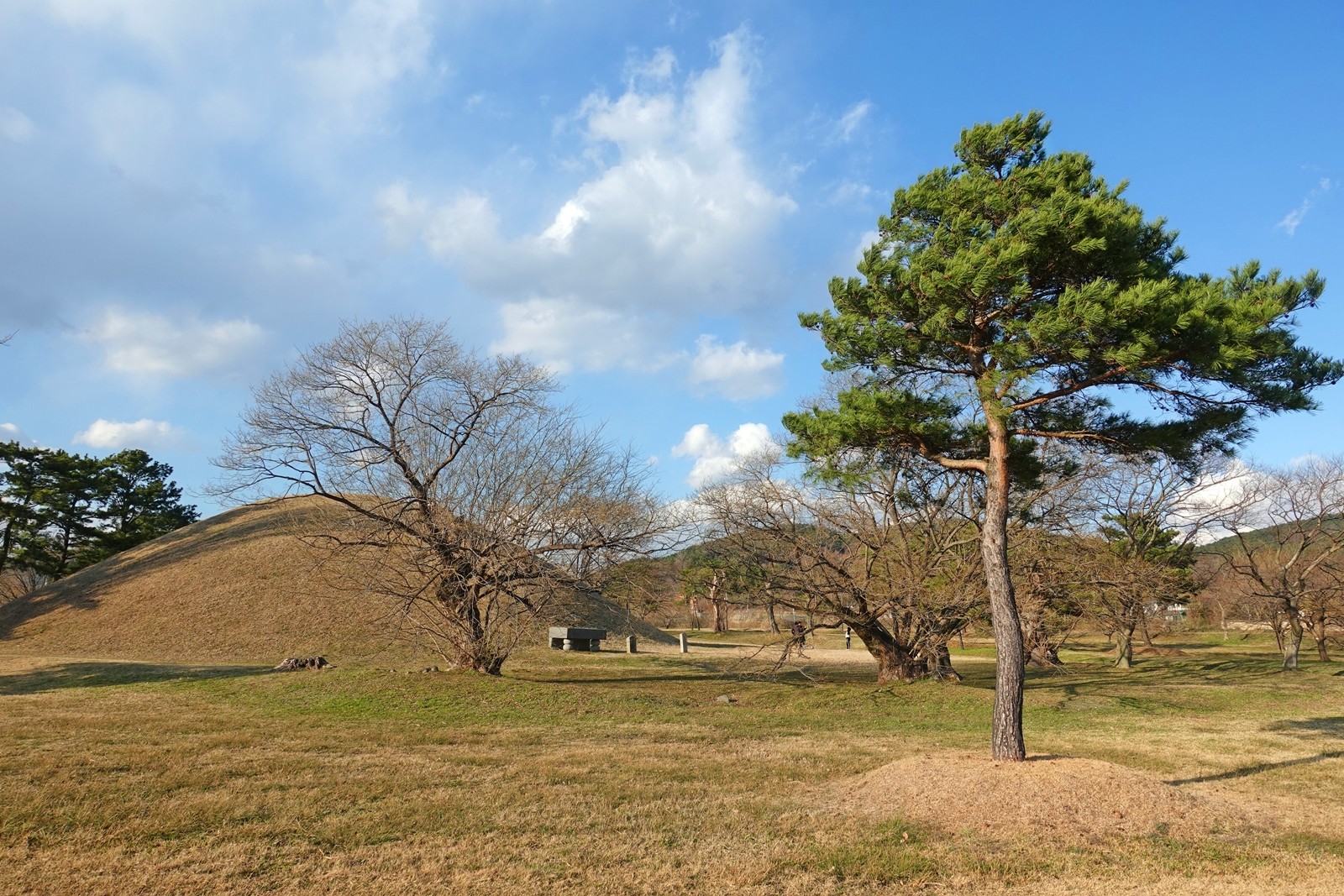 제 자리를 찾아 자라난 고목들이 의도한 듯 아닌 듯 진평왕릉을 감싸고서 숲을 이룬다.