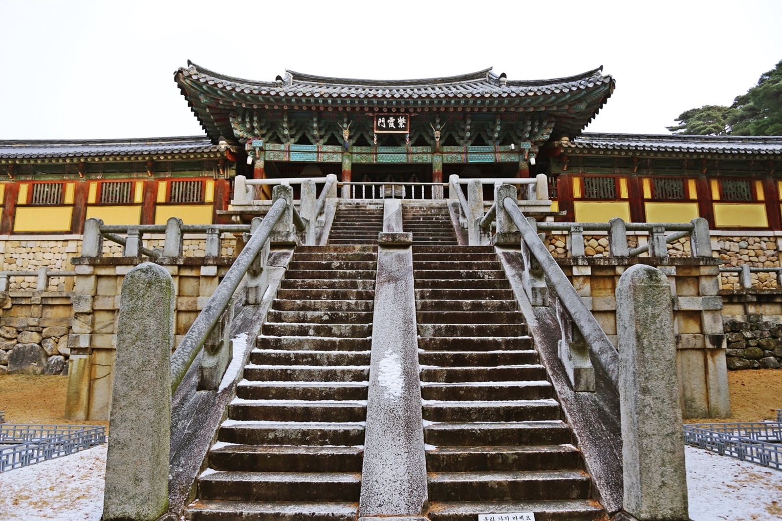청운교와 백운교를 올라 자하문을 지나면 석가모니 부처를 모신 대웅전과 마주할 수 있다.